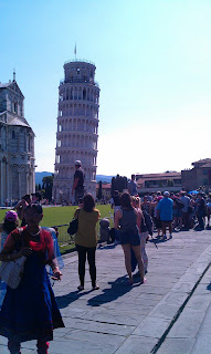Unser letzter Ziel in Italien sollte Pisa sein. Unser Busfahrer hat uns die Fahrt über sehr amüsiert und hat uns bevor wir ausgestiegen sind, immer einige witzige Sprüche gesagt. Einer von denen war "Um 10 vor 14 Uhr müsst ihr wieder alle im Bus sein. Nein, nicht 2 Uhr, weil das ja schon Nachts ist. Und wer nicht um 14 da ist, darf hinter dem Bus hertanzen". Stellt euch das noch mit einem russischen Akzent vor. Einfach nur hinreißend :D